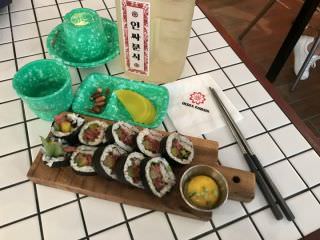 12時のオープン直後に入りまして、でも食べ終わって出る頃には満席になりました。とても人気のお店です。注文しましたのは、ユッケキムパッ6,500ウォン。グループで訪問すれば、あれこれ注文して、シェアすればもっと楽しいかと思います。