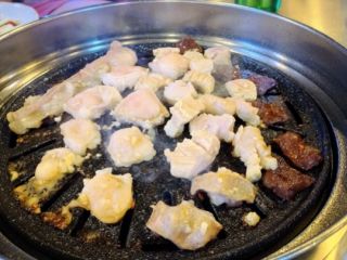 ホルモンを自分で焼くのが初めてで、恐る恐る鉄板にのせていたら、お店のおばさんがきて手際よく切って焼いてくれました。元々焼いてくれるみたいなのですが、お店を1人で回してるので忙しかったみたいです。よくわからない時は、待っているとおばさんが勝手にやってくれます!