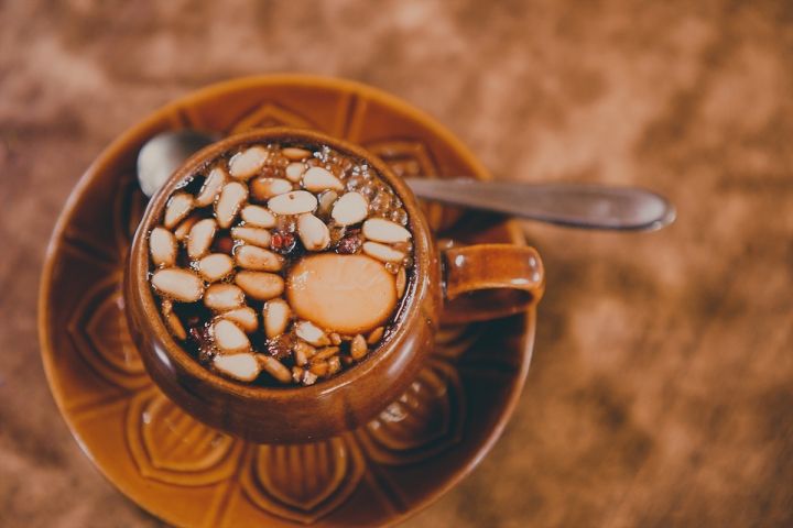 甘い韓方茶に松の実やクルミに卵黄が入れてあり、独特な味です、壁一面に芸能人の写真やお客のコメントが沢山貼ってありました、投稿日:bianさん | 19.09.30s.g.c.take さん