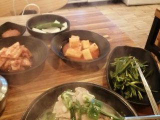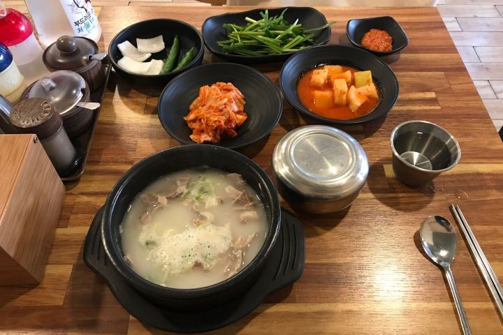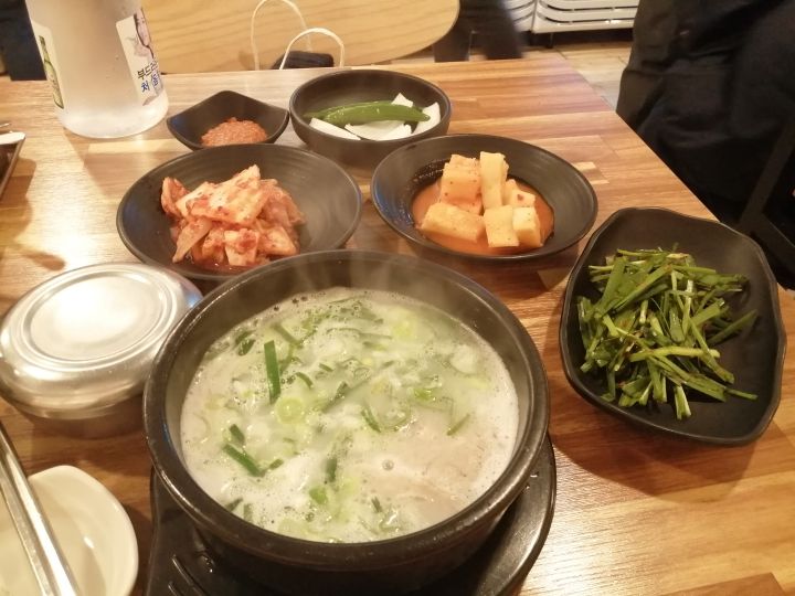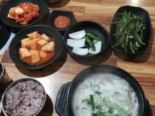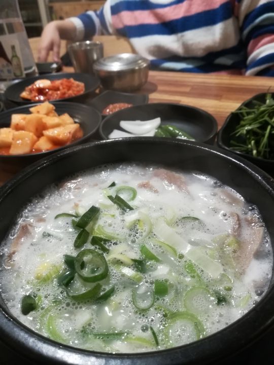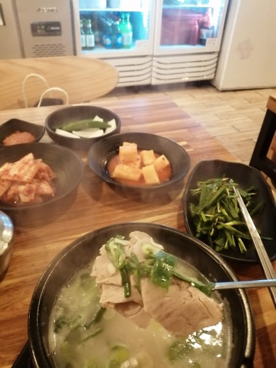 利用時期:2020.02お気に入り追加急に冷え込んで温かいものが食べたくて、以前ブログで見かけたハドンジンさんに行きました。テジクッパ、マンドゥを注文。熱々で運ばれてきました。生のニラが付いて来ますので入れます。味は、薄いので自分で調整します。私は付いてきたアミやからしを少々。スープが美味しい! 食べた感じとしては、豚骨スープに似てるのですが臭みが全くありません。スープ自体はコクも程よく全部飲み干しました。付いてるおかずも美味しくカクテキ最高です。東大門DDPから10分弱歩くかな?新堂駅からはすぐです。帰りに黄色いテントを見物して、マスクショップへも立ち寄れます。テジクッパ7000₩、家族連れや地元に愛されるお店みたいです。お店の方も優しいです。オススメです!