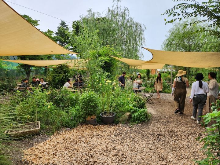 お店の面積の半分はよく手入れのされた庭園からなり、テラス席でくつろげながら食べられます。