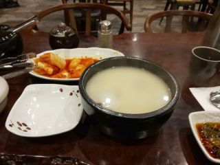 〇仙のソルロンタンは最初からある程度、調味料で味付けされていると思いますが、ここのはシンプルな牛骨煮込みだけの味(多分)ですので、自分の好みで塩、コショウ、キムチなどで味変します。私はキムチで味変をして美味しくいただきました。さすがソルロンタンの名店は期待を裏切りませんでした。ごちそうさまでした。