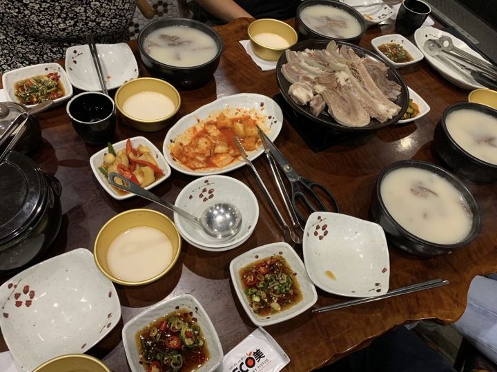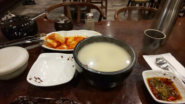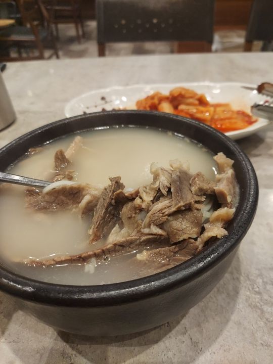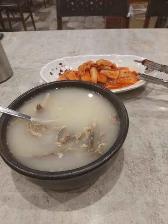 キムチ食べてソルロンタンのスープを飲む、美味しく頂けました
