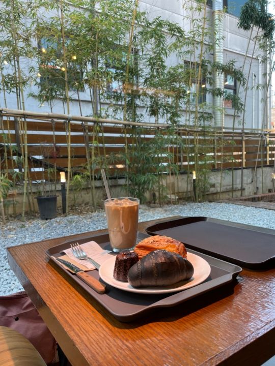 土曜の午後に行ったらパンはほとんど売り切れていて、のこっていたパンを1つだけシェアしました。ドリンクは1ドリンク制なので人数分の注文が必要です! -