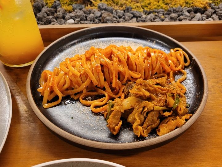 パスタみたいに見えるカルグクスは、ピリ辛で美味しかったです。