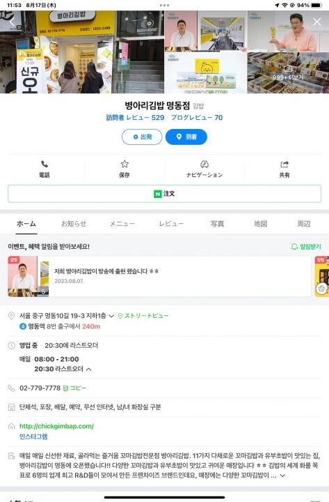 利用日:2023.03.21お気に入り追加明洞駅8番出口を出てすぐあるオリーブヤングの所を左に曲がり、ずっとまっすぐ歩いてソラリアホテルを通り越してすぐ右側の細い道路に入ると、イサックトーストがある右側の建物の地下1階にあります。
