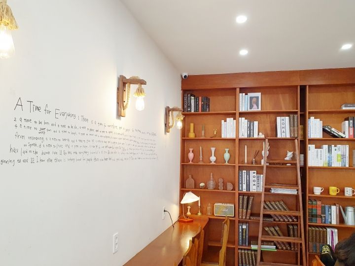 私が行ったときは、平日なのに、結構、混んでいて、イートインはあきらめました。店内は、シャンデリアがあって、書庫みたいな落ち着けそうな空間。