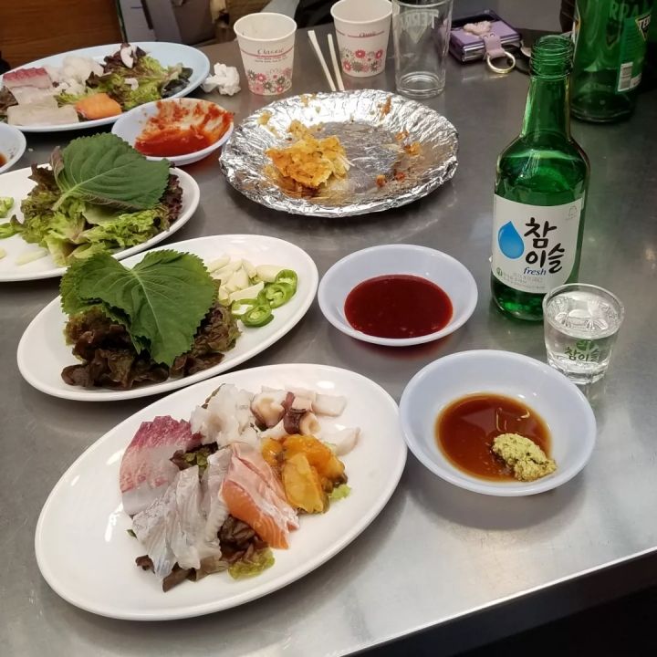 こちらは、モドゥムフェ(刺身の盛り合わせ)が一人分(1000円)から注文できる、なんとも有り難いポジャンマチャなんです。