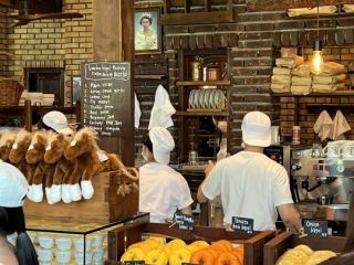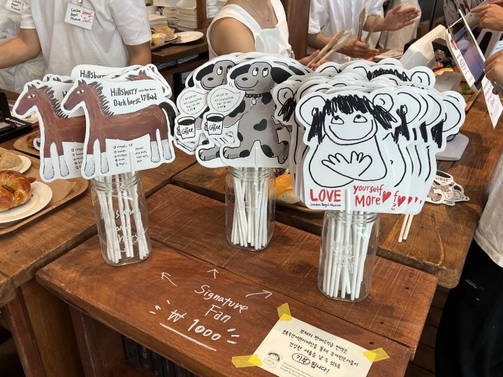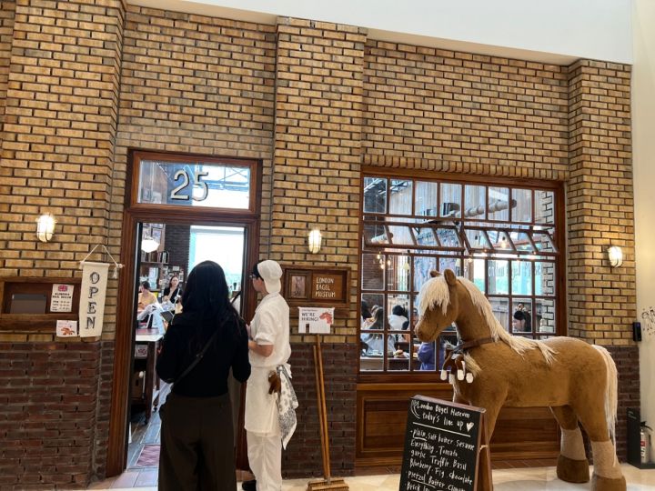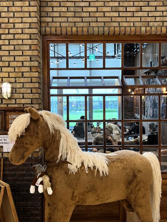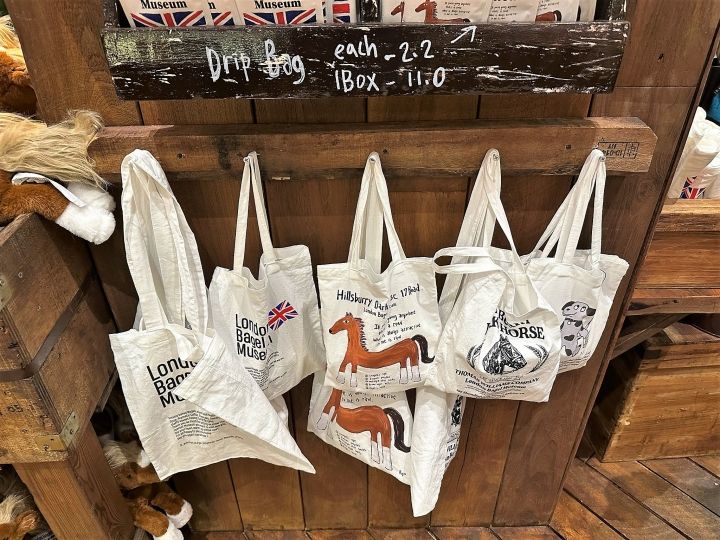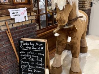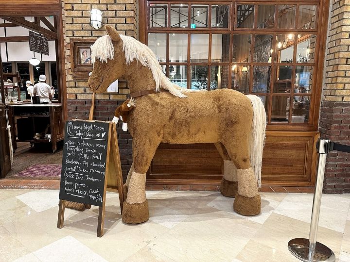 ベーグルは完売しているものの、グッズ購入用に店内に入ることができました。エコバッグとかステッカー、ポストカード、馬のぬいぐるみとかがあって、エコバッグを購入している人たちも多かったです。