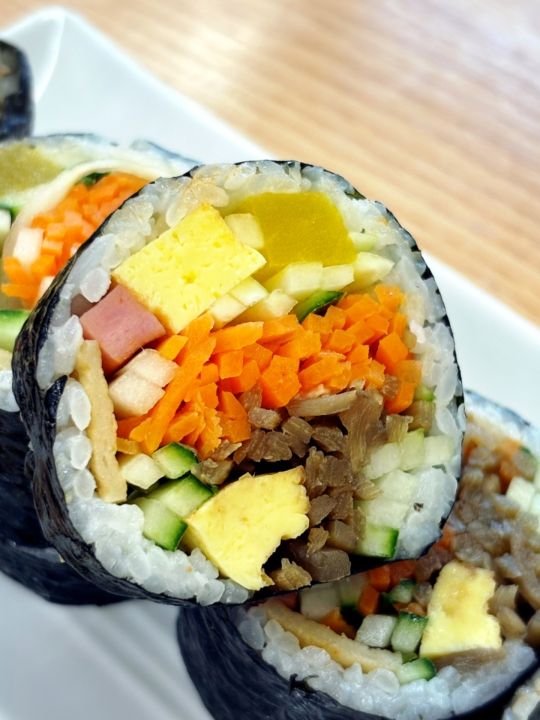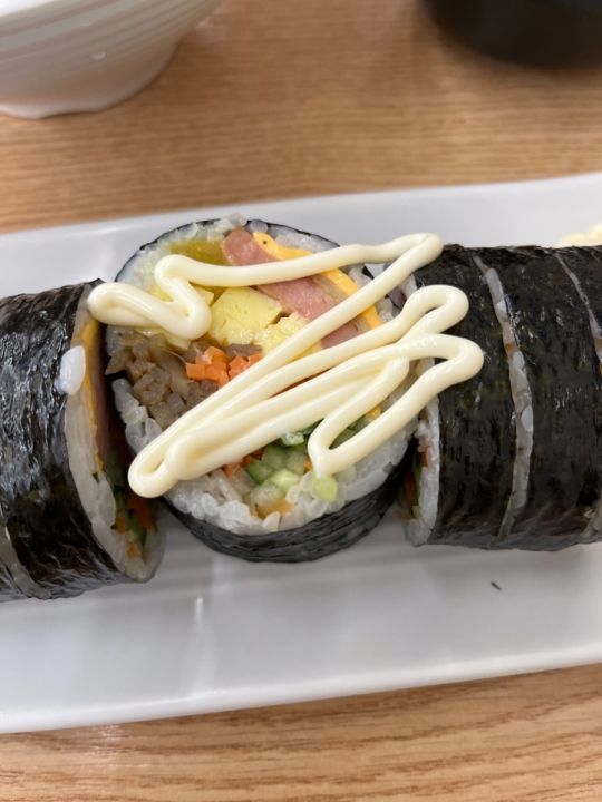 個人的にはキンパをジャンクフード的に食べるのが好きなので笑。今回はスパムキンパにチーズ追加