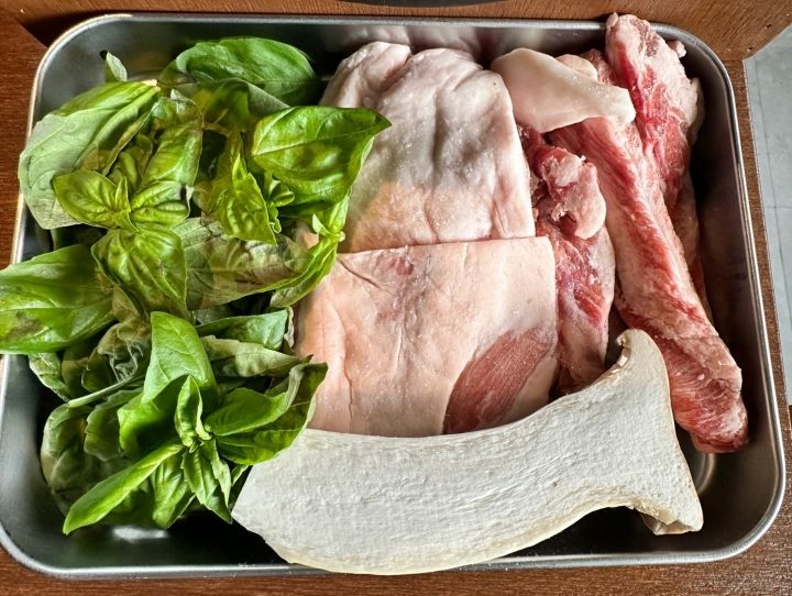 このお店の名物はバジルと一緒にお肉を食べるメニューがあるのですが