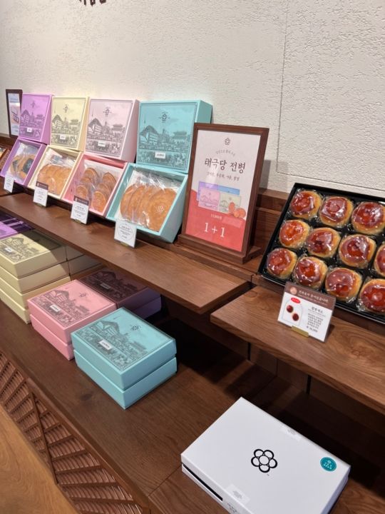 こちらでは、韓国の伝統茶を飲むことができたり、韓国のお菓子やパンの販売が多くあるお店です。箱等に包装されている物もいくつかあったので、お土産にもおすすめです♡