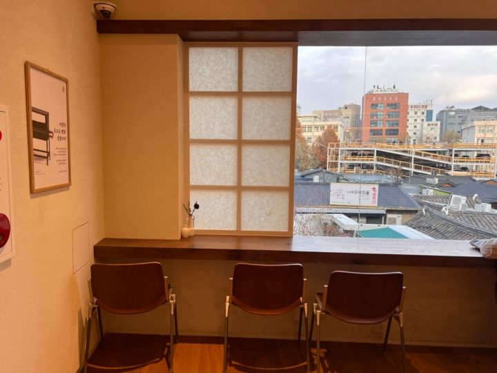 窓際の席では三清洞の街並みや韓屋(ハノク)を見ながら韓国の雰囲気をたっぷりと味わいながらお茶タイムを過ごせます