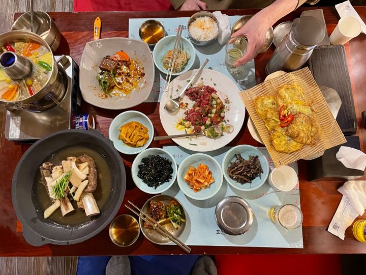 ユッケ、肉のジョン、カルビチム、神仙炉が並ぶコースを頂きました。