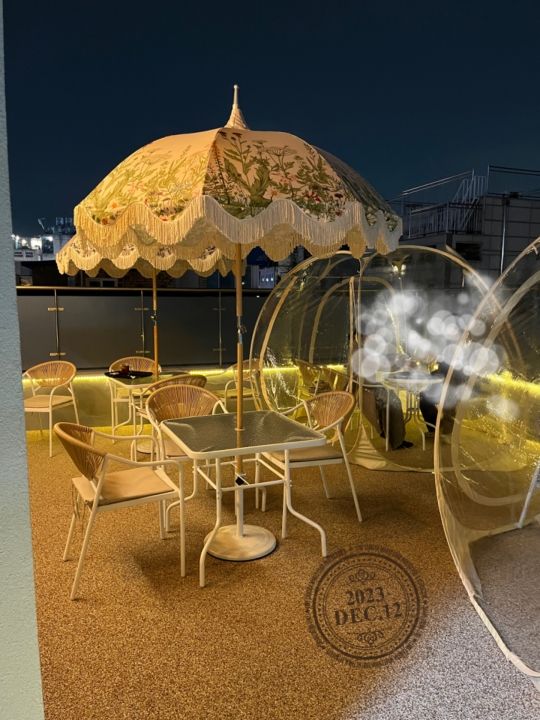 ルーフトップには、透明の風よけテントがありました。冬の夜空のもと、ヴァンショーを飲みながら時を刻む…これも乙な感じが致しました。