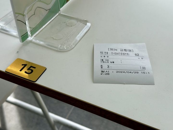 地下1階に降りると、執事のようなコスプレをしたスタッフさんが、タッチパネルを操作して、座席を指定し、注文するメニューを選んで決済するよう話をしてくれるので、今回はドリンクを1つだけ注文しました。カラフルなドリンクは7,000ウォンでしたが、このくらいの値段ならめちゃくちゃ高い、という感じではないので、料金設定は良いと思います。現金は使えず、カードオンリーです。