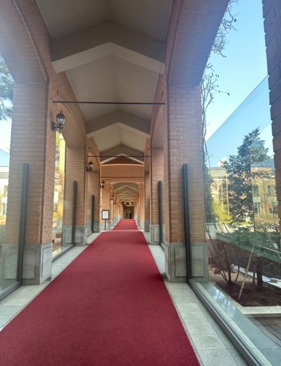 窓から見えるチャペルがとても素敵で、チャペルと中庭を眺めながらコーヒータイム