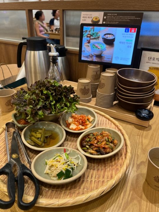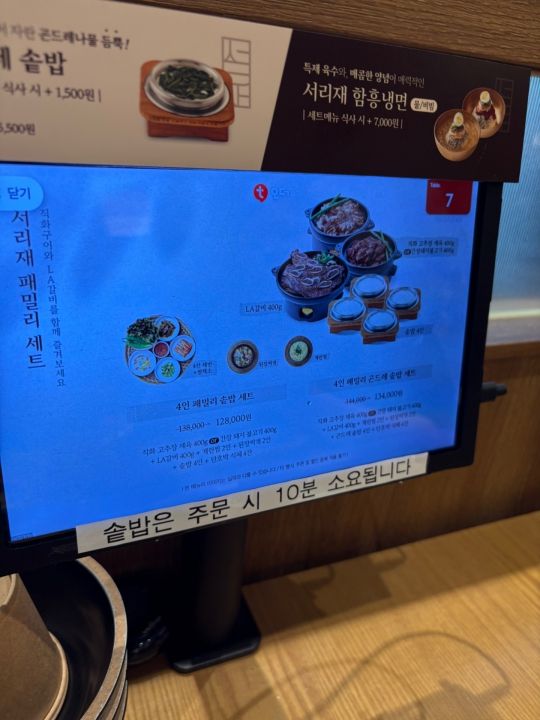 メニューはタッチパネルになっており日本語はありませんでした。韓国あるあるかと思うのですが、メニューを選ぶ中で追加選択をしなければいけない画面になるのですがここでよくわからないので諦めそうになるのですが普通の白いご飯で良いのであればウォンw,0を選択して進めば大丈夫です。