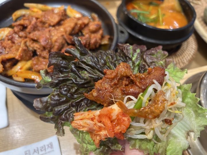 韓国はミナリ(セリ)ブームなのですが、ミナリと明太子の釜飯があり、そちらとプルコギの定食にしました♡
