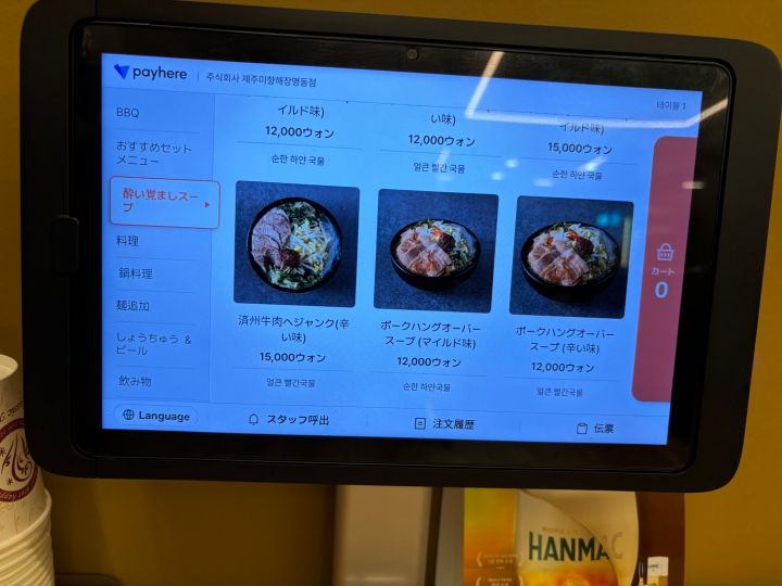 注文は写真付きの機械でできるので、韓国語ができなくても大丈夫◎