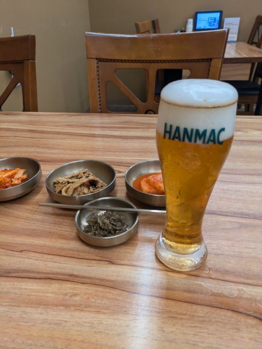 生ビールとユッケビピンパと初めて食べるヘジャンク