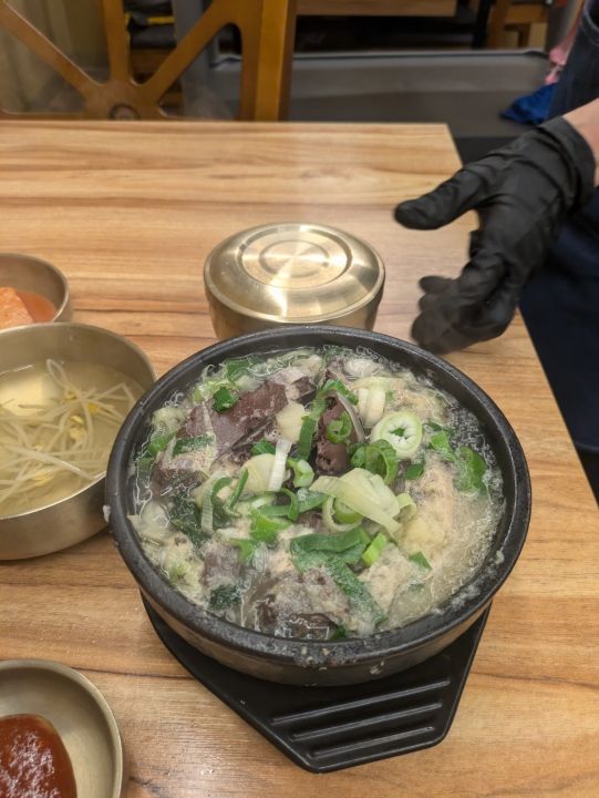 辛くないクッパを注文して、お肉がたっぷり入っていて、独特な香りがするマイルドなクッパでした。