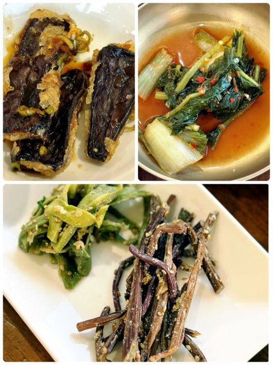 チャプチェに 茄子フライ、オイコチュ味噌等々、鰈のフライは揚げたてでした。