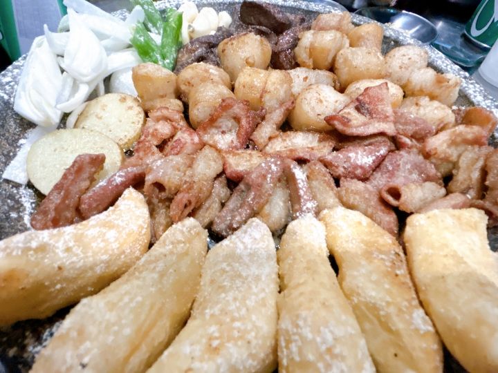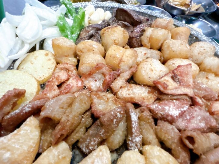 メニューはメインメニューのコプチャンのみです。盛り合わせを頼むとコプチャン(マルチョウ)、テチャン、マクチャン、ヨムトン(ハツ)の4種が出てきます。