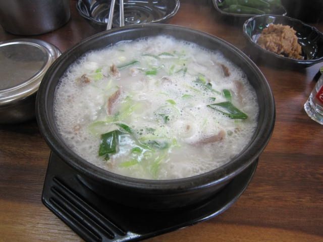 この店のコムタンは、透明なスープではなく白濁したソルロンタンの様なスープでした。肉も適当な大きさにスライスしたものが少なく、細切れの肉が多かった点は、残念でした。味は匂いもなく適当に味付けして食べましたがさっぱりしていて美味しかったです。