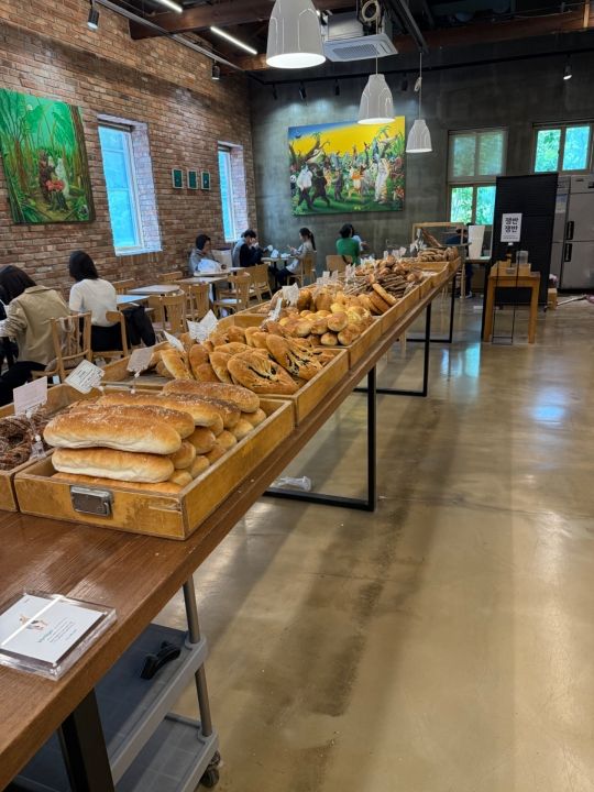 私はコーンオニオンチャバッタ、栗が入ったパンにソボロと呼ばれるポロポロしたクッキー生地が乗った「ソバムソバム」、くるみパンを買いました。ビニール手袋をはめた手でパンをつかむので、パンのフカフカ具合がよくわかり、触感からも美味しそうなのが伝わってきます。