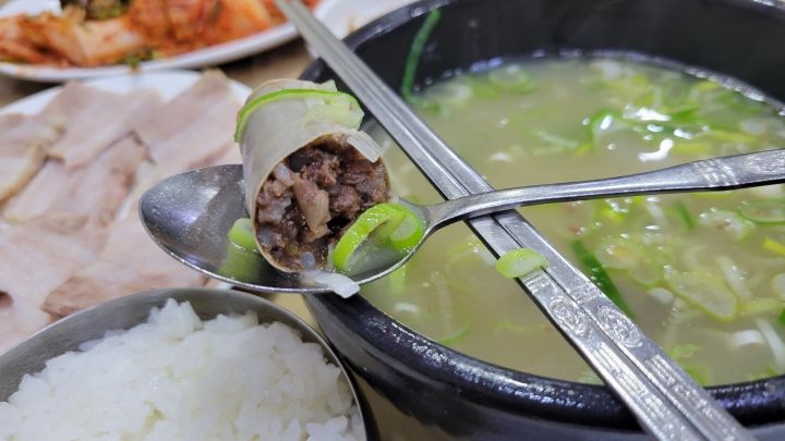 スンデを食べてみたかったので、スユクにスンデは付いてくるか聞いたら、スープにスンデを数切れサービスで入れてくれました(またもや感謝!!)