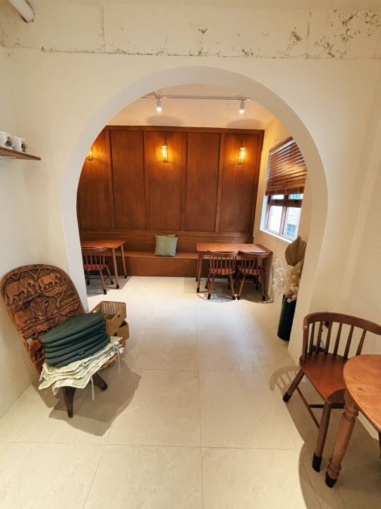 アイボリーホワイトとwoodトーンが調和する素敵なカフェ〜まるで童話の世界。