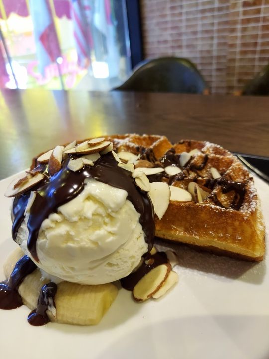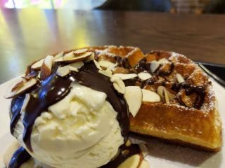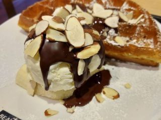 サクサクの温かいワッフルに冷たいアイス、甘いチョコソースの組み合わせが絶品でした。