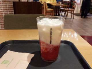ワッフルは焼き置きしていたようで、冷めていて表面がサクッとした感じもなく、かる~いあのワッフルではなく、少々重いベタっとしたものでした・・・。