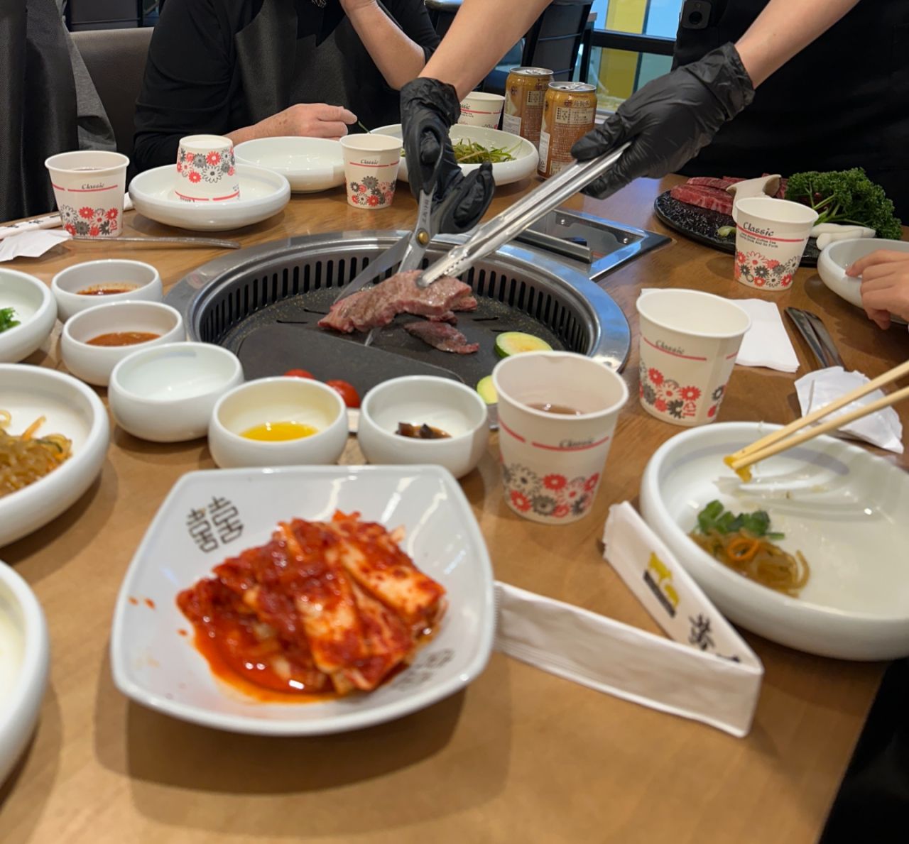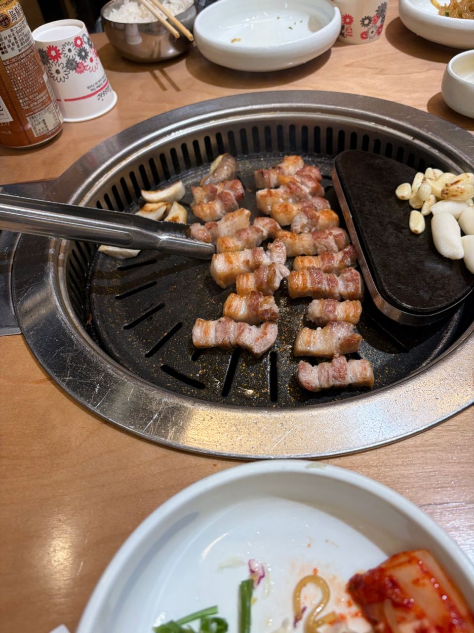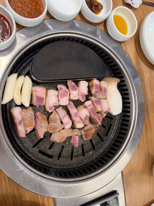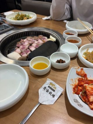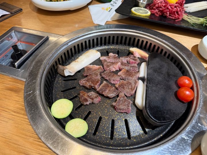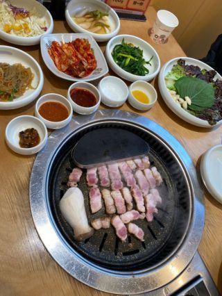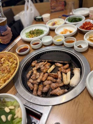 お肉もパンチャンもとても美味しく、焼けたお肉は焦げないように鉄板の端に設けられた保温スペースに乗せてくれます。焼くタイミングも店員さんが見ていてくれます。