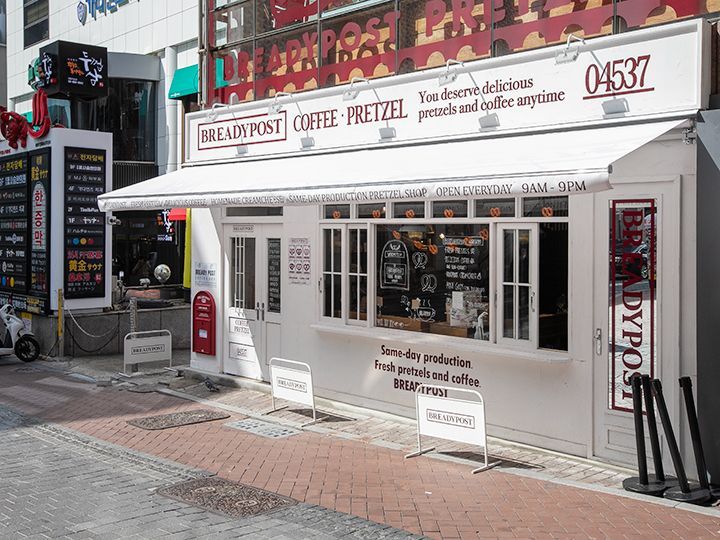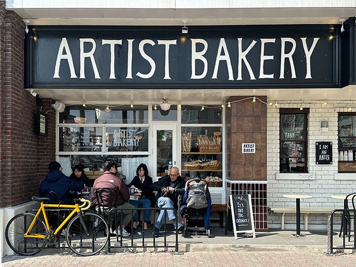 安国駅1番出口すぐにある「ARTIST BAKERY」は、大人気ベーグルショップ「LONDON BAGEL MUSEUM(ロンドンベーグルミュージアム)」を手掛けたプロデューサーが手掛ける塩パン専門カフェ。白を基調としたおしゃれな店内に、可愛い店舗オリジナルグッズも並びます。