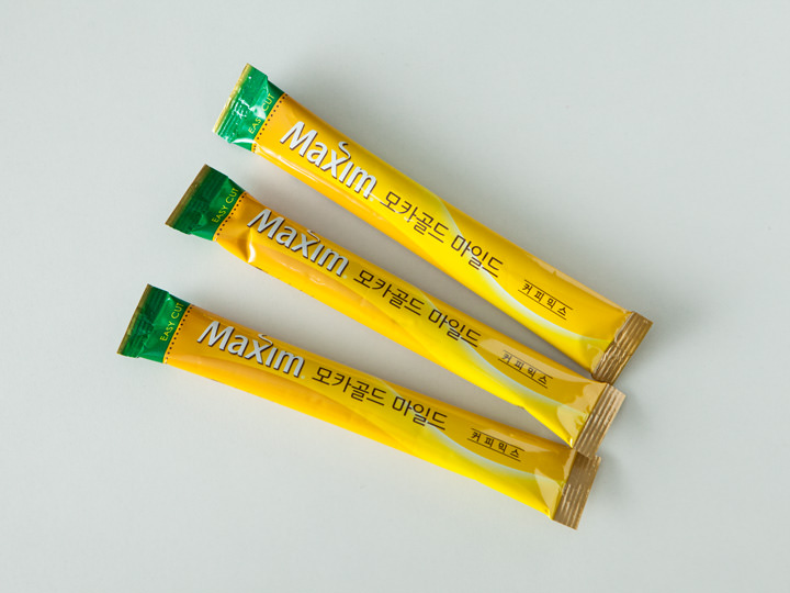 スティックタイプのインスタントコーヒーは、数十本入りの箱で買うと1本300~500ウォン前後で、チョコパイなどのお菓子は10個入り程度の箱で買うと、1個300~500ウォン前後で調達できるので、2つ合わせても900ウォン前後!