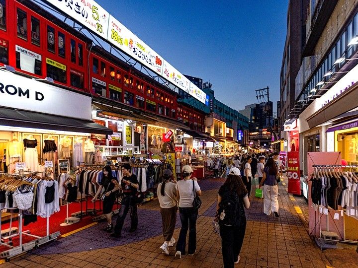 夜も賑やかな弘大では、23時頃まで営業しているショップも多く、ナイトショッピングも楽しめます。