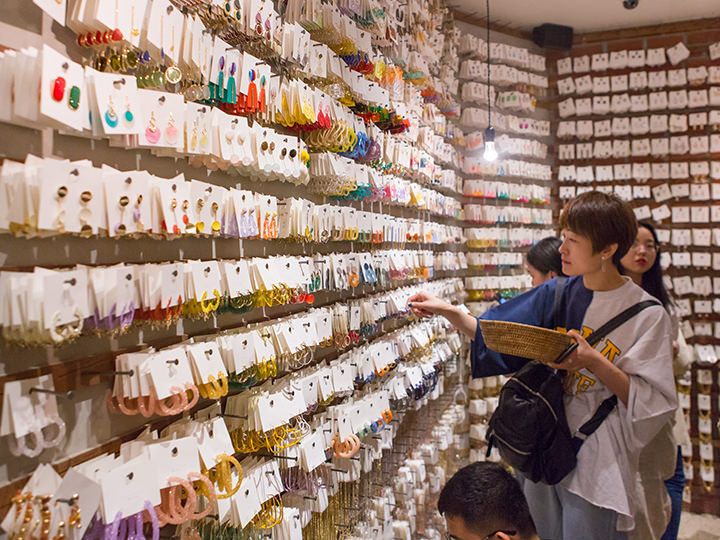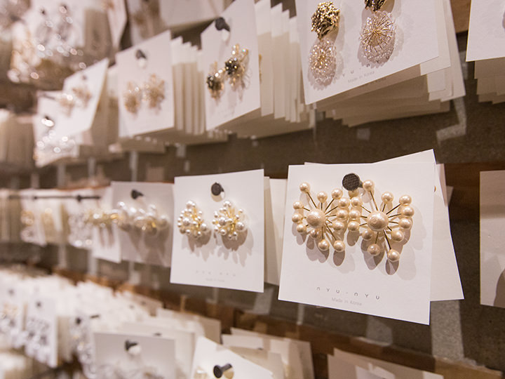 日本からの観光客の間で絶大な支持を集める人気の大型アクセサリーショップで、いまや東大門ショッピングの必須コース。1階から3階まで3フロアあり、壁一面に並べられた約2万点のアクセサリーは毎日新作が入荷されるとあって、店内は常に混雑しています。