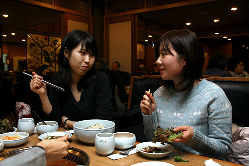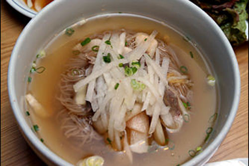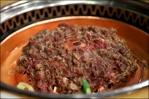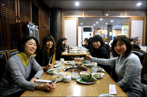 待ちに待った夕食。コネストスタッフがさらに2人加わって楽しい宴会の始まりです。選んだお店はベニキアホテルアカシアから7分ほどの距離の、平壌式冷麺で有名な「又来屋(ウレオク)(※掲載終了)」。冷麺(1人前9,000ウォン)は牛肉の濃厚なスープがやみつきになる味。もう一つの看板メニューであるプルコギ(1人前25,000ウォン)にも満足。