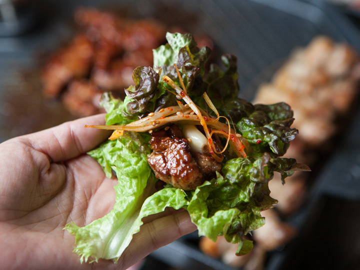 数多くの芸能人やアイドルが訪れた有名店で、土鍋(トゥッペギ)に海産物とおぼろ豆腐がたっぷり入った「海鮮スンドゥブ」が人気。豆腐がヘルシーなのはもちろんのこと、定食メニューについてくる石鍋ごはんは、銀杏や粟、豆、黒米が入っていて栄養たっぷりです。