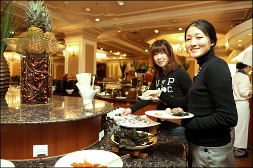 ホテルに戻っても、寝るだけではちょっと…。一日の疲れをとりながら、しっとりリッチな夜時間の開始です。まずは地下1階・2階にあるエステ&サウナのフロアへ。こちらは水を使ったハイドロテラピーのエステサロン「バレオ・テラピー」が有名。また、サウナ(6:00~22:00、第1水曜休、15歳以上65歳以下入場可)ではアカスリ(23,000ウォン)や、ボディマッサージ(45,000ウォン)などのオプションを受けることもできます。