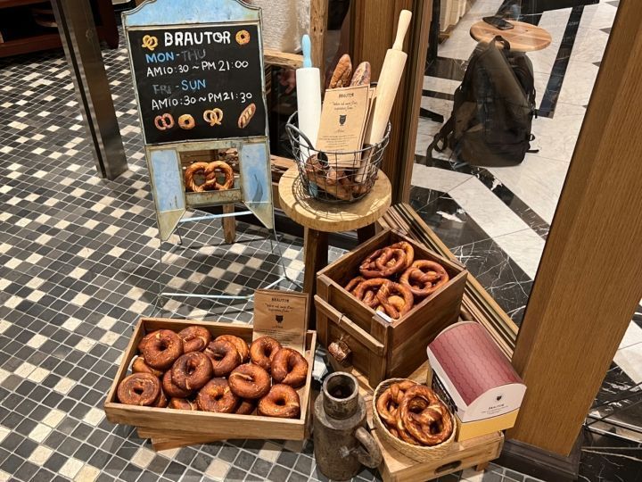 「新世界百貨店江南店」地下「スイーツパーク」にあるお店。甘いものからお食事系まで、バラエティあふれる「プレッツェル」が並びます。イートインスペースがあるので、買い物途中の休憩にもぴったり。