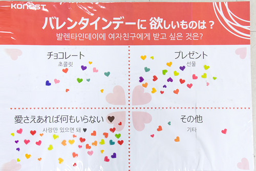 韓国人男性73人を対象にアンケートを行なった結果、バレンタインデーに欲しいもの第1位に選ばれたのは「愛さえあれば何もいらない」という衝撃のお答え!