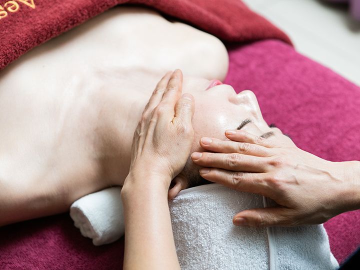 コルギマッサージと全身経路マッサージで頭から足先までリンパの流れを促し、顔はもちろん全身の疲労も解消します。