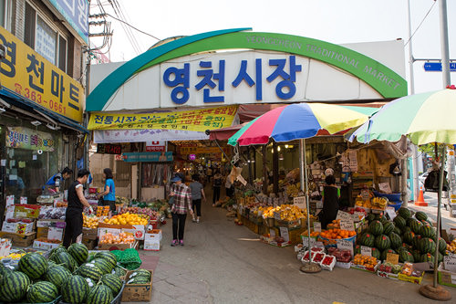 西大門(ソデムン)独立公園の横にある霊泉(ヨンチョン)市場。