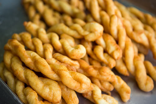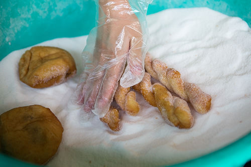 2.地元民に愛される砂糖たっぷりねじりドーナツをまとめ買い