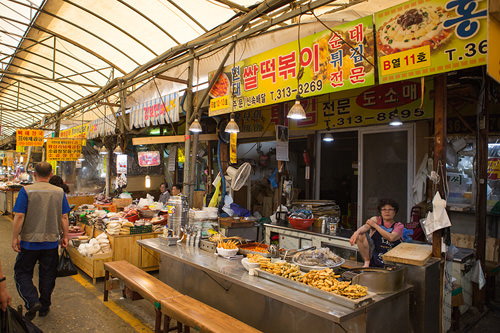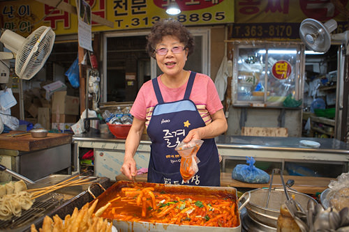 服屋や雑貨屋もありますが、どちらかというと食品が中心の市場で、野菜や魚など家庭でも使う食材からトッポッキ、オデンなどの屋台おやつグルメも揃っていて、とにかく活気に満ち溢れています!