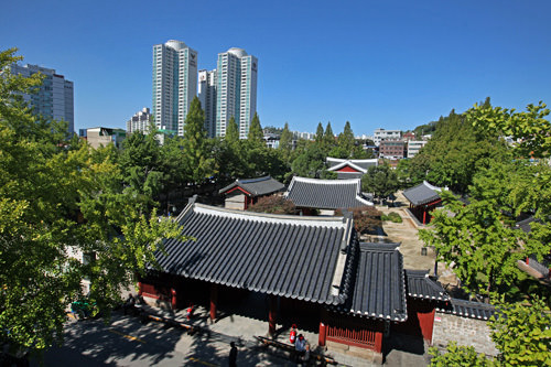 初めて行く人は少しわかりづらいかもしれませんが、独立門の道路をはさんだ反対側に広がっています。