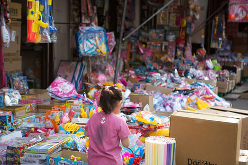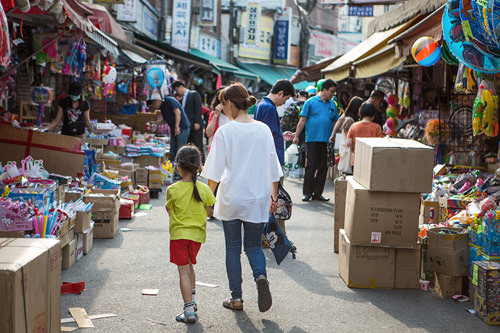 先ほどのトッケビ市場とは東廟前駅をはさんで反対側にあるおもちゃ市場、昌信洞文具・玩具通り。通りの両サイドにおもちゃ屋さんがずらーっと並び、こんなに同業者ばっかりでやっていけるの?と不思議になってしまう市場です。